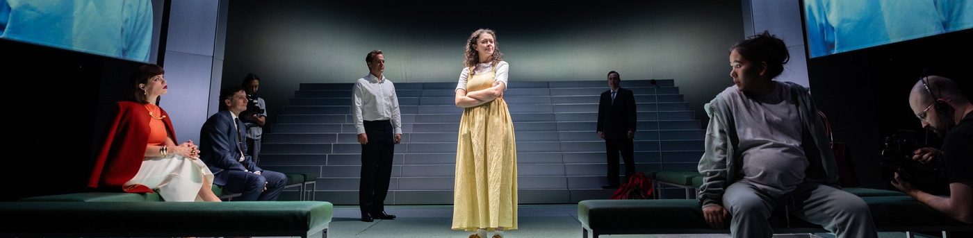 As the doomed man is lowered through a trap door, we are offered a deliberately jarring transition into a sunny countryside setting. Here we meet his sister Isabella (Isis Hainsworth). Her outfit reflects her gated surroundings: yellow and childlike. She is greeted by Claudio’s friend Lucio with the frankly brilliant remark: “Hail, virgin.” When Isabella speaks, it is in a naïve country bumpkin accent which, coupled with her costuming, proves that the RSC seem to think her a little unintelligent, with youthful chastity being championed as her main ‘strength’. Here is where this reviewer differs slightly in opinion from Stratford’s greatest minds. In 2025, is it not a little backwards to base a woman’s worth solely on how little sex she has? This is a particular shame given that Measure for Measure is in fact an excellent vehicle for exposing male hypocrisy and unleashing the female anger it provokes.