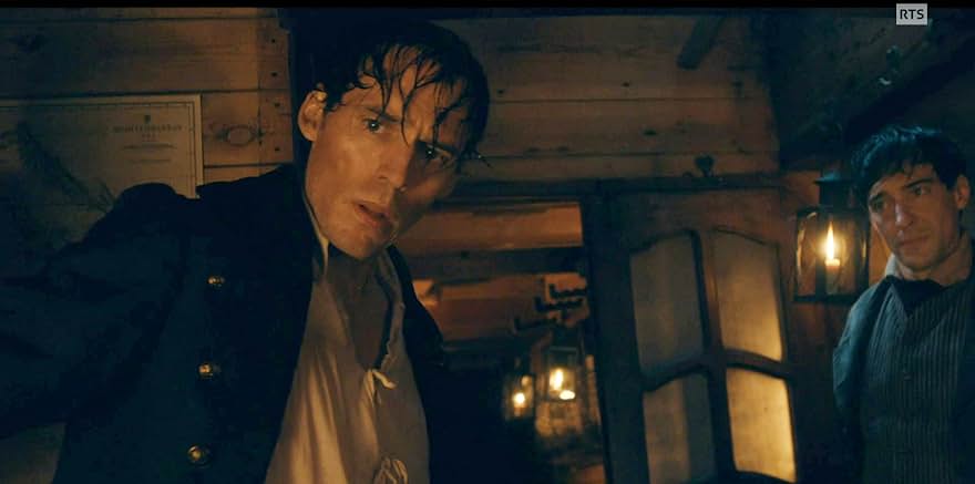This prompted the series to be what I would coin ‘protagonistic’, in the blunt sense that we are constantly viewing the world and transitioning through scenes with Sam Claflin (literally, his face is constantly smouldering our screens). This, unfortunately for those transitioning from the book to the series, undermines the significance of the transformation of our leading character in the book. In the book, a third of the way through, when Dantès’ fortune swivels for the second time, we freshly begin to navigate the world through those implicated in the Count’s search for vengeance. He is first, for instance, encountered twice by the newly introduced characters Franz d’Épinay and Albert de Morcerf during their vacation to Italy: first on the Island of Monte Cristo, he appears exclusively to Franz as an enigmatic, wealthy eccentric named ‘Sinbad the Sailor’, kitted out with all the orientalist motifs of the era; and second, he appears in the aristocratic scene of the theatre boxes of Rome, introducing himself now as the Count, with boys attesting to his gothic, supernatural persona by describing him in vampiric terms.