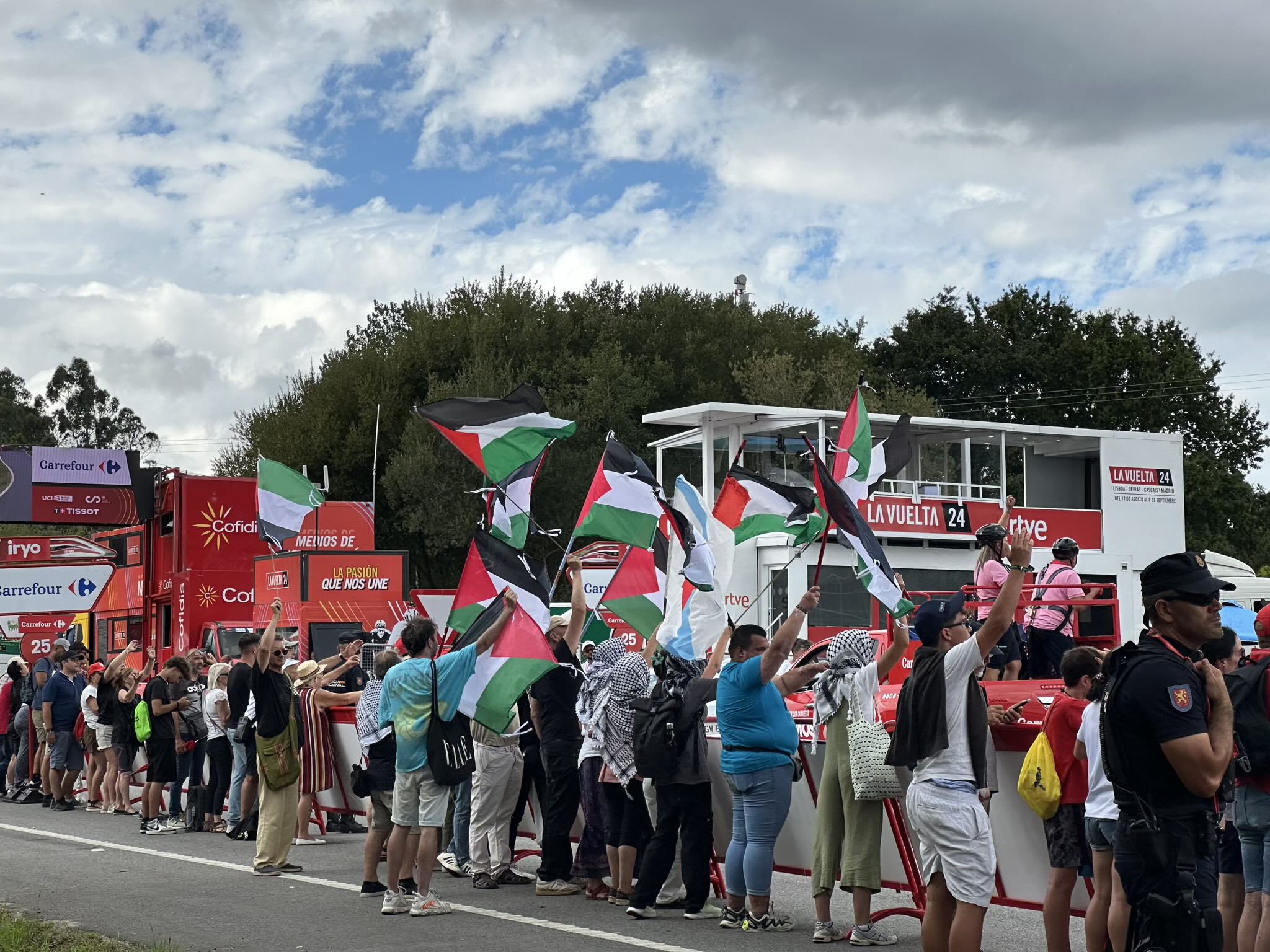 The Vuelta, just as other ‘Grand Tours’ such as the Tour de France and the Giro d’ Italia, consists of around three weeks of day-long cycling stages. An overall winner is declared at the end based on the cyclists’ cumulative time. Throughout the duration of the race, protesters espousing the Palestinian cause succeeded in entering the race course on multiple occasions, forcing the annulment of various stages and stoppages throughout.