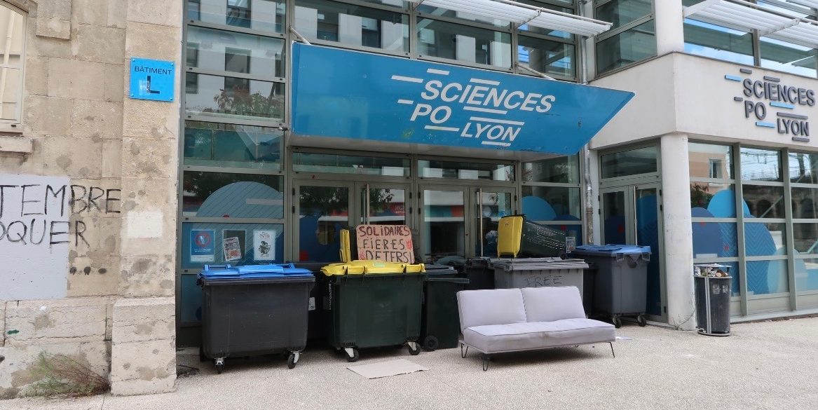 That morning, some Sciences Po students had wheeled bins, placed signs, and even deposited a sofa across the entrance to the main teaching building before the first class. Anyone who hadn’t checked their emails before leaving the house would’ve wasted a trip to campus.