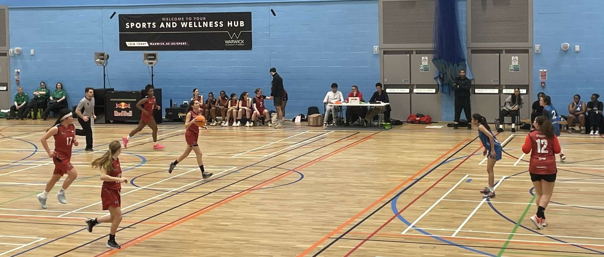The Bears continued their strong performance increasing their score to 11-5, putting the pressure onto Coventry, forcing them to make mistakes such as drifting outside the lines of the court. Chants of “Let’s go, Warwick” had a similar effect as in the game earlier, with Warwick’s number 12 bringing the score to 13-7. After a time out, Warwick’s number 44 intercepted a Coventry ball and demonstrating incredible teamwork, passed to number 47 who scored a two-pointer, bringing the Bears lead to 15-7 at the end of the first quarter.