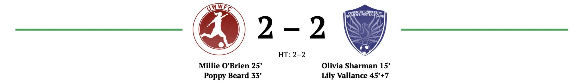 Errors twice let down the home side, with Coventry opening the scoring after midfielder Olivia Sharman was able to outmanoeuvre the Warwick goalkeeper far from goal and slot home against the run of play. Warwick had started off slow in what began as an evenly contested match, but gradually found momentum spurred on by energetic displays by the home supporters. Several close shots had reinforced the promise of Warwick dominance, the Coventry keeper the more tested of the two.