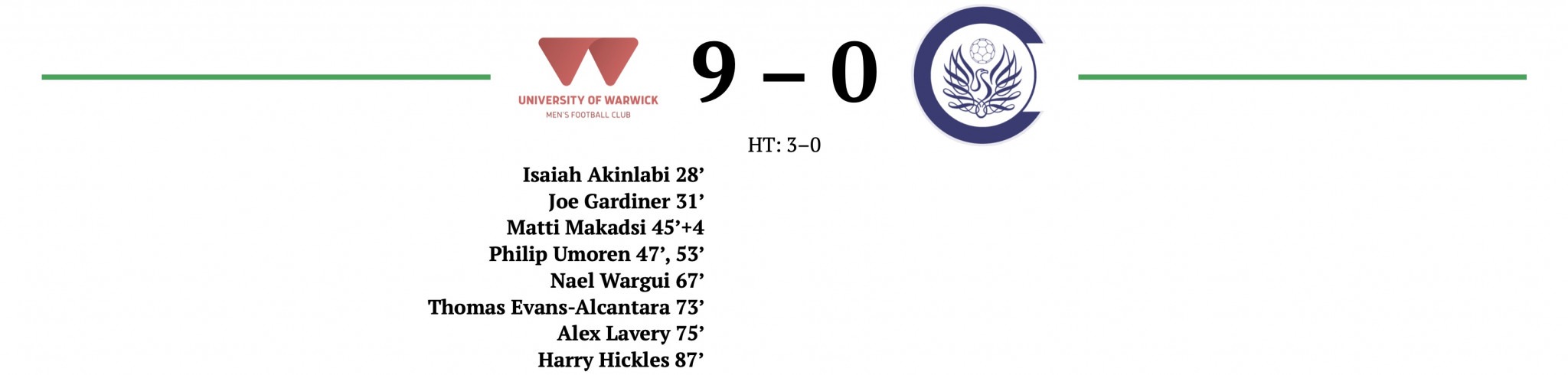 Warwick Men’s Football Club stormed to victory over rivals Coventry as they struck an astonishing nine goals past their despondent opponents.