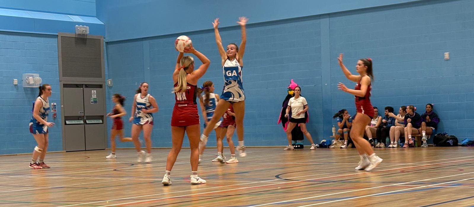 Warwick started with the ball, taking an early lead almost immediately. On the next restart, Coventry were unable to match their opponents quick scoring, as Warwick’s WD intercepted a pass, deflecting the ball away from Coventry’s WA. Coventry eventually regained possession, but poor passing saw the ball thrown out of the court and play returned to Warwick. Unfortunately, an incomplete pass from Warwick’s GA led to Coventry moving the ball into their opponent’s D and even in spite of some strong defending from Warwick, Coventry scored shortly after, tying the scores.