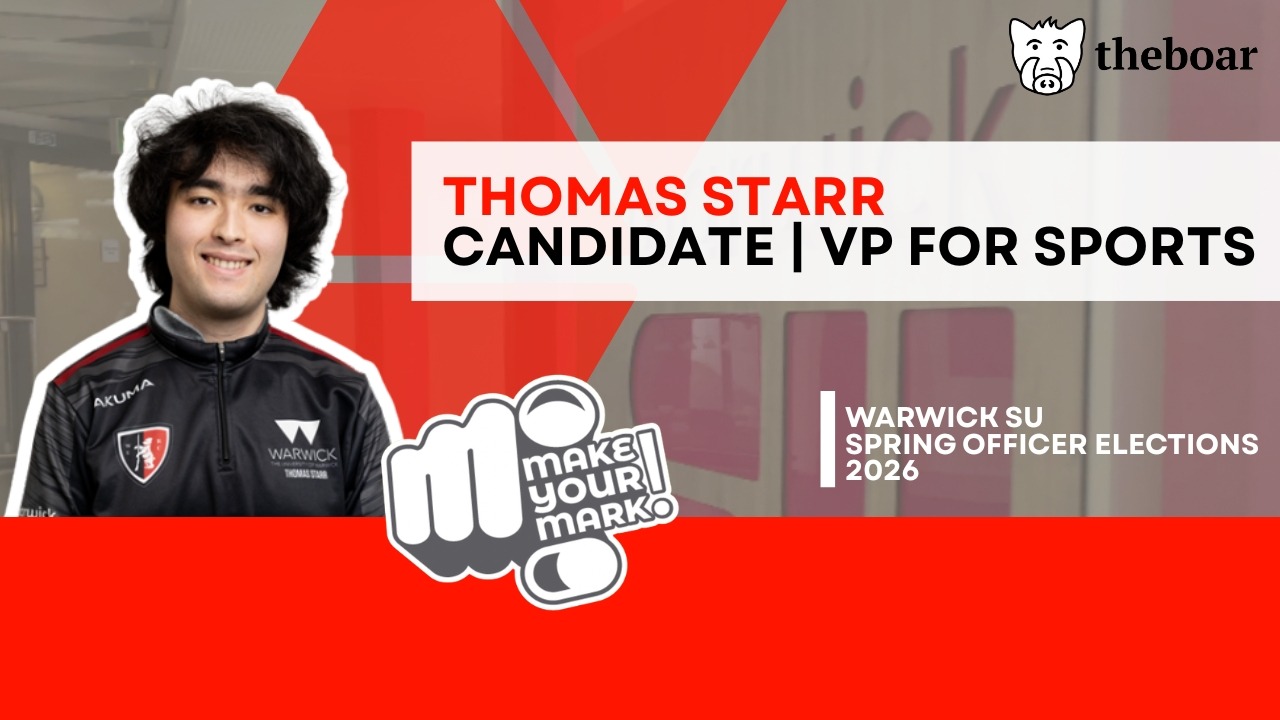 Thomas Starr, who is running to be the next Vice-President for Sports, sat down with The Boar‘s News team to discuss his vision for the position, including improved coaching opportunities, continued communication with students over the Warwick Sport rebrand, and expanded promotion of Team Warwick clubs.