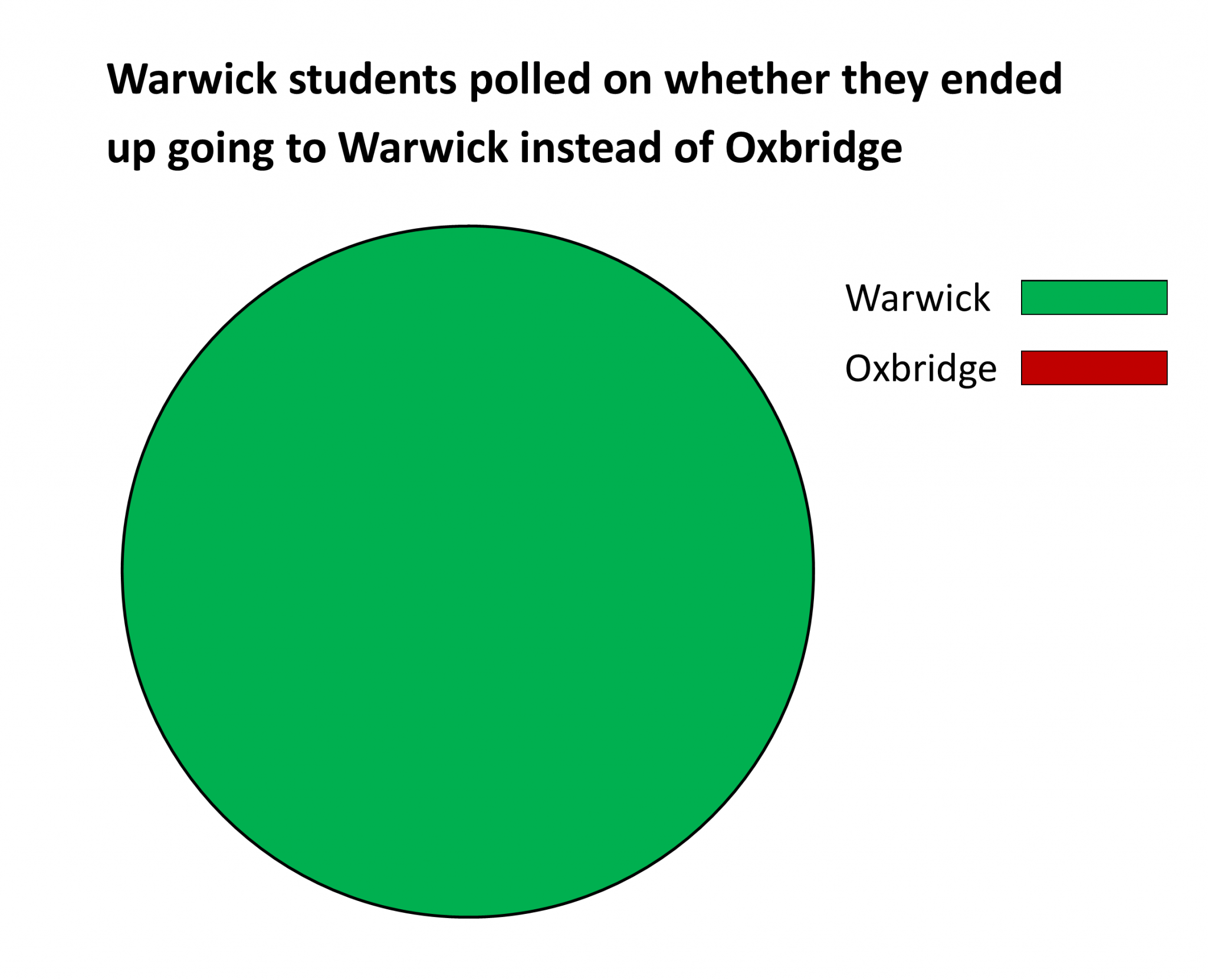Having polled Warwick students, I have recently discovered that roughly 100% of people who applied to Oxbridge ended up going to Warwick instead, a coincidence? Not likely.
